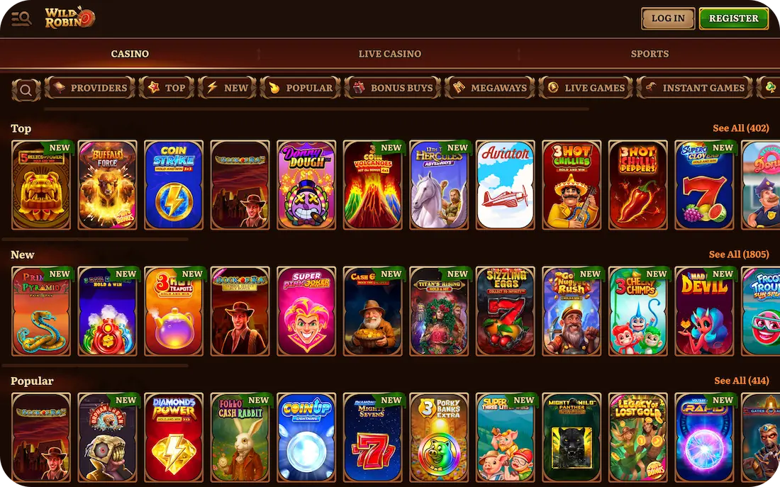 Get into the action at Wild Robin Casino, where you'll find a vast selection of 9,200+ games offering something for everyone. Register today and unlock exciting welcome bonuses, along with other rewards given to enhance your gambling experience. Enjoy a variety of WildRobin casino games and exclusive offers that make every play feel rewarding!